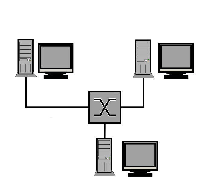 یک شبکه کامپیوتری ساده از یک سوییچ با تعدادی کابل تشکیل شده، که از سوییچ به کامپیوترهای درون شبکه وصل میشوند.