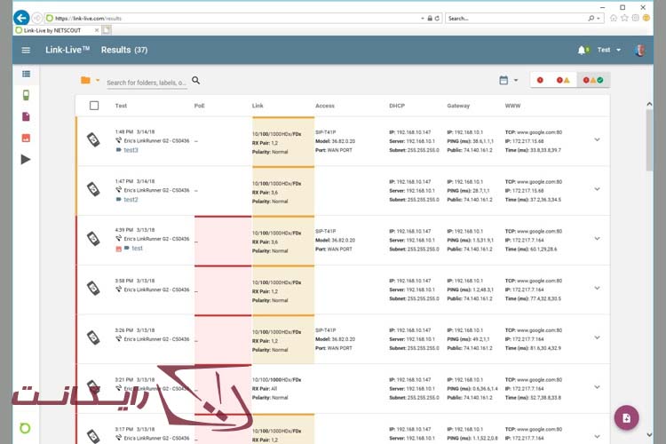 شما با باز کردن وبسایت Link-Live در رایانه یا دیگر دستگاههای خود، میتوانید تمامی نتایج بدست آمده از آزمایشات و تستهای انجام شده را همراه با آن اطلاعاتی که در دیگر دستگاههای NETSCOUT (که به صورت خودکار بارگذاری شده اند) در اکانت خودتان مشاهده کنید. شما همچنین قادر خواهید بود که این نتایج را جستجو کرده یا آنها را به فایلهای PDF یا گزارشهای CSV تبدیل کنید. با اینکه ایرادی در این زمینه وارد نیست، اما خوب میشد که با استفاده از نرم افزار در دستگاه نیز، بتوانیم دسترسی مشابهی به گزارشات و نتایج بدست آمده داشته باشیم.